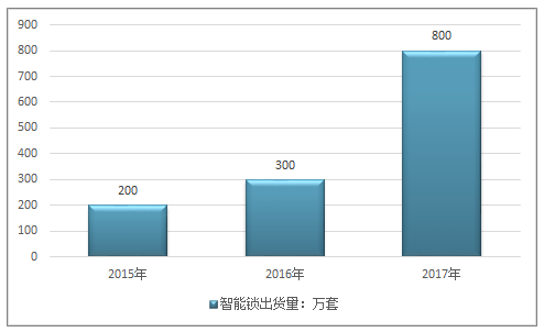 2015年~2017年中國(guó)智能鎖出貨量